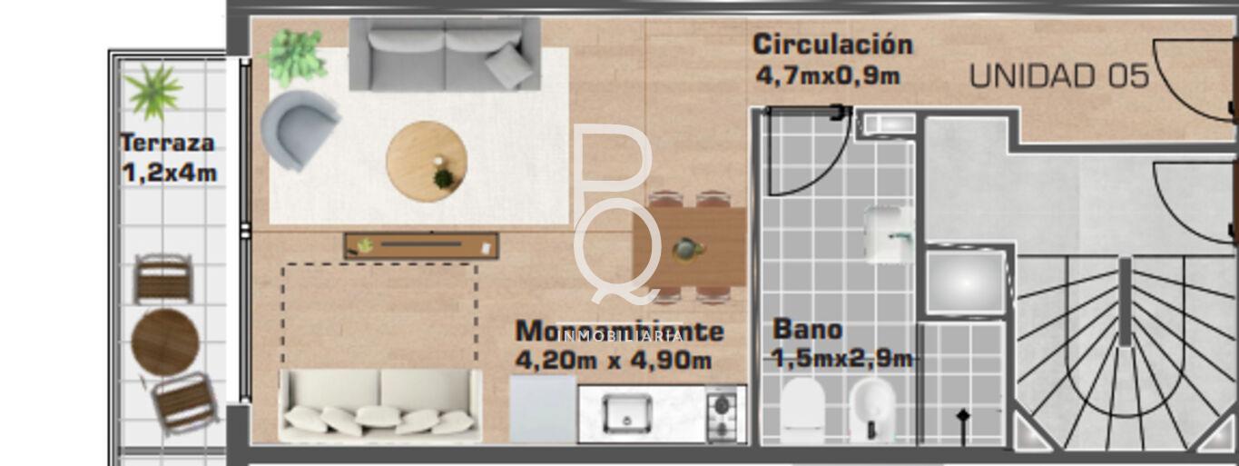 Superficie de 40 mt2 + terraza de 5 mt2